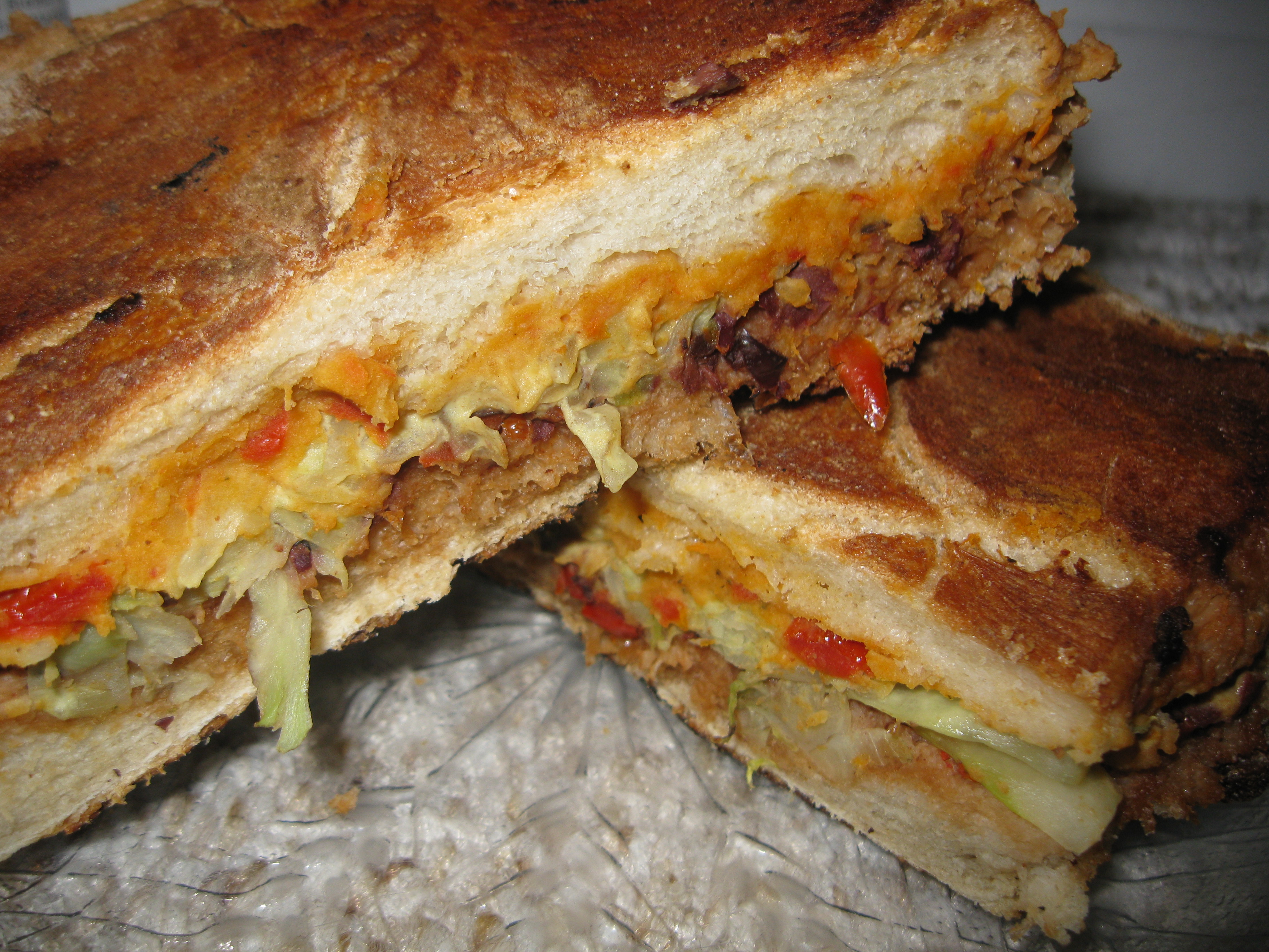 7. Flip sandwich and reapply heavy pan until the other side of the bread gets flat. Voila!