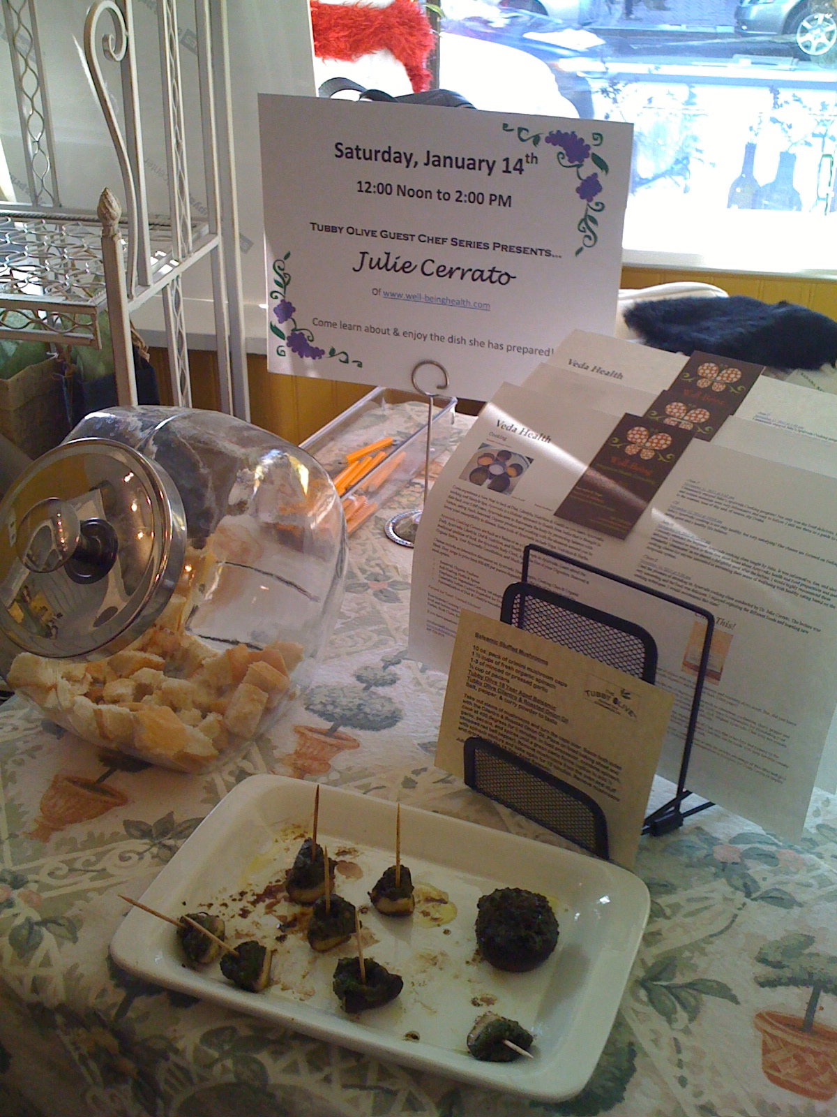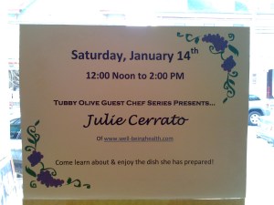 I had the unique and wonderful opportunity last week to be a guest chef at The Tubby Olive, purveyor of organic and natural gourmet oils, vinegars and spices.