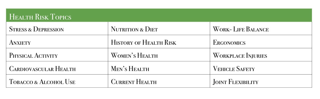 We cover a wide range of Health Risk Topics: